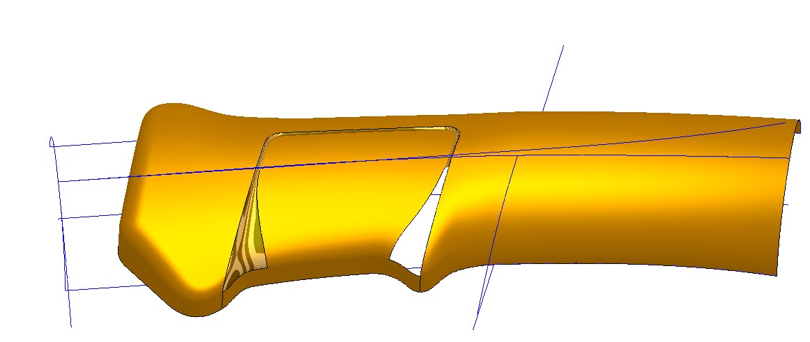 The main shape is constructed from three dimensional control curves. The control curves were generated to fully define industrial design’s imported surfaces.