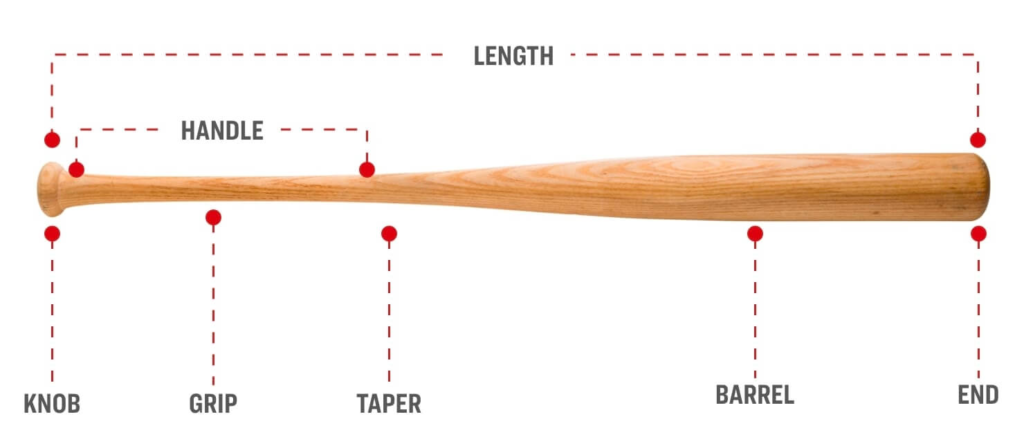 The modern wooden bat cannot exceed 42″ in length, 2.61″ in max barrel diameter, and has to be made from a single piece of solid wood. The thickest part is usually 1-2″ from the end of the barrel and then tapers down in both directions.